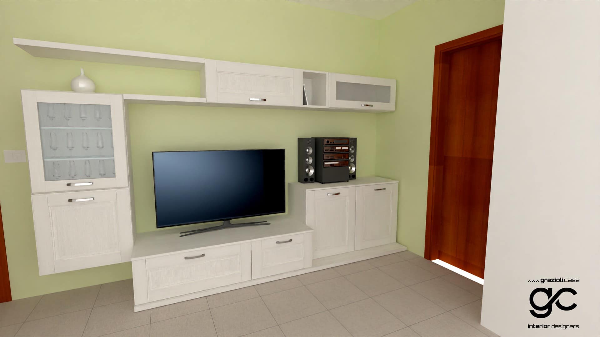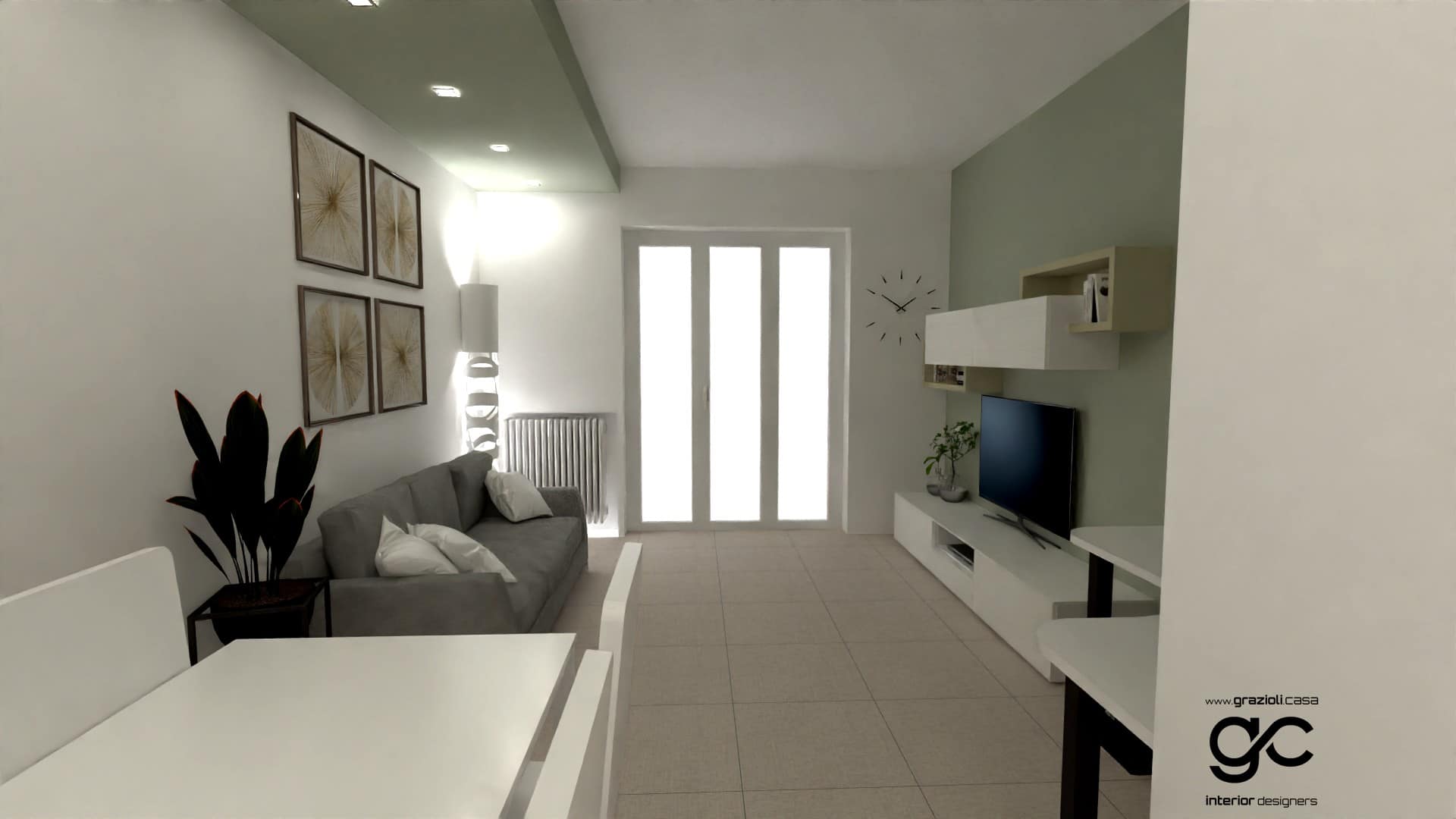 Studio della Zona Giorno con Salotto, Tavolo, MobileTV, Angolo PC ed illuminazione. Progetto Approvato: